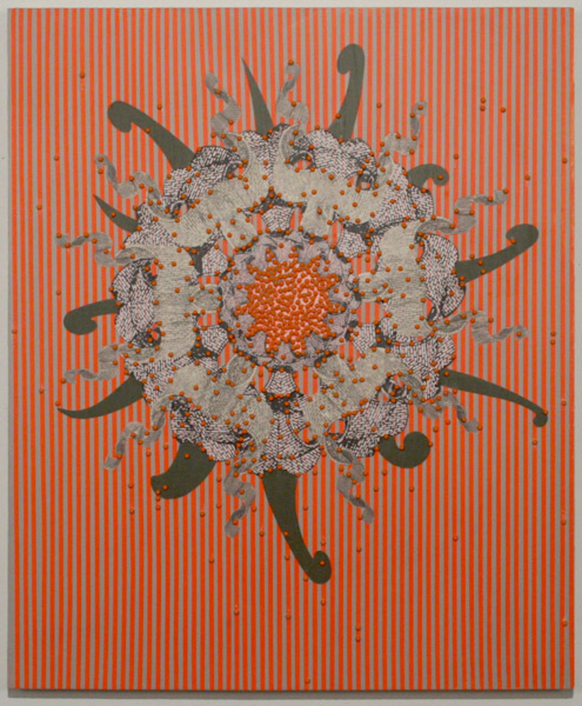 Acrylic, paper and map pins on panel