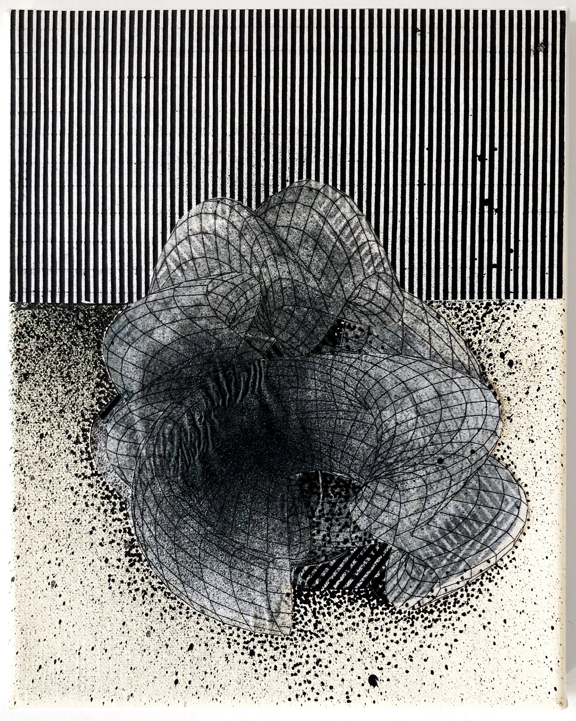 Ink, paint and paper on canvas